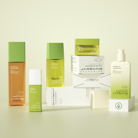 Custom 30 50 120ml Green Square Cosmetic Lotion Bottle Jar Packaging for Beauty Products